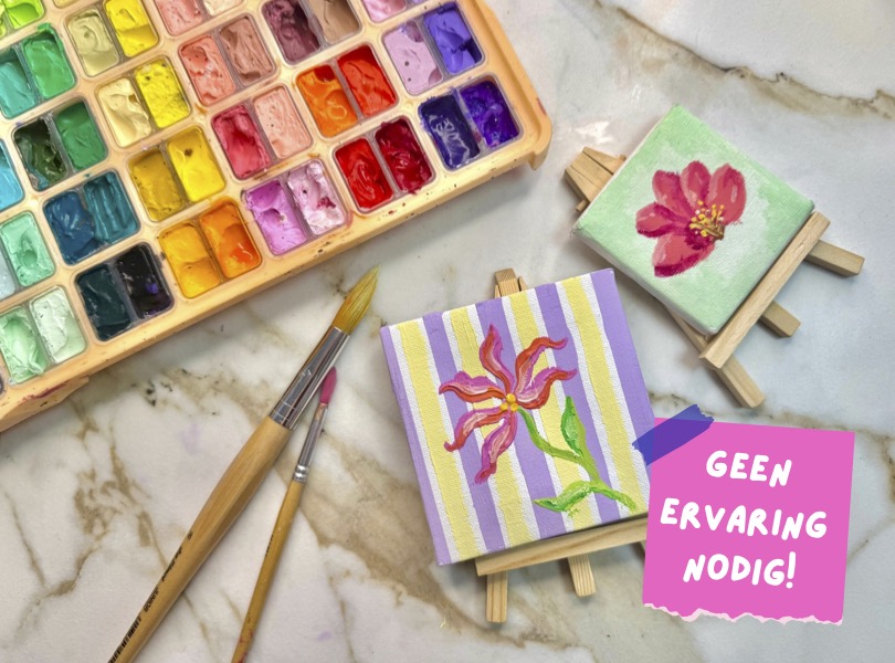 Je gaat onder begeleiding van Jill aan de slag met de gouacheverf van Himi en beschildert je eigen mini canvas. Jill geeft je handige tips en tekentrucs hoe je zelf verschillende bloemen kunt tekenen, en helpt je aan de slag met de gouacheverf.
